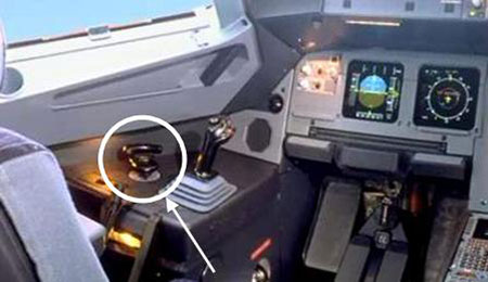 The aircraft previously flown by the captain, an A320, was equipped with nose wheel tillers located at knee height for both pilots (see Photo 5). The tillers operate on a horizontal plane with a left-right movement to turn the aircraft on the ground. The usual handling of either tiller is to lower the arm, grasp the top of the handle, and move the tiller by moving the wrist. The position of the nose wheel tiller on the A320 aircraft is lower and further outboard in relation to the tiller on the B744.