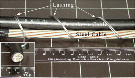 The cable consists of a telephone cable covered with black protective sheathing lashed to a steel cable (see Photo 1). The cable did not break on impact.