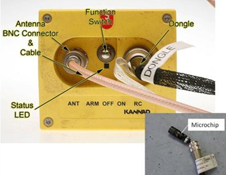 The ELT Footnote 14 found on this helicopter was manufactured by KANNAD and installed by Robinson Helicopters prior to sale. The ELT was capable of transmitting digital data on frequency 406 MHz and audio data on frequency 121.5 MHz. This ELT unit can be programmed with aircraft specific information in 2 ways: for units without a programmable dongle, the information is entered directly into the ELT unit; for units with a programmable dongleFootnote 15, the aircraft specific information must be programmed into the dongle. When a pre-programmed dongle is plugged into the ELT and the function switch is cycled from the OFF to the ARM position the dongle will then download its data into the ELT. The ELT installation on the occurrence aircraft included; the ELT unit, a programmable dongle and a Remote Control Panel (RCP).