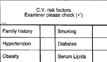 Use of the risk factors table is voluntary and no explicit instructions regarding the use of the table, the meaning of the check marks or the absence thereof are provided. In the occurrence pilot's last 3 medicals, even though the CAME noted elsewhere on the medical report that the pilot had been treated for hypertension and was aware of his obesity and smoking, only the box indicating that the pilot was a smoker had been checked off in the CV risk factors table.