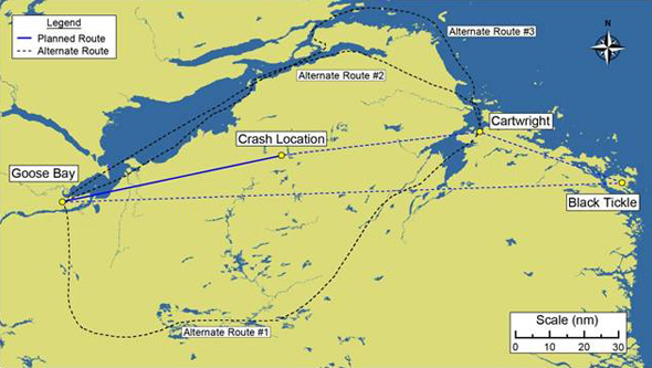 The most common route from Goose Bay to Cartwright is direct. However, weather conditions may require flying around the Mealy Mountains. Pilots who routinely fly the coast of Labrador choose any one of the following alternate routes (see Figure 1):