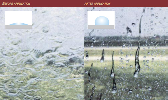 All Airbus aircraft are equipped with a rain repellent system. When heavy rain is encountered, the flight crew activates the system by depressing a switch on the overhead panel. The system delivers a calibrated quantity of rain repellent fluid which is dispersed evenly onto the windshield outer surfaces. The repellent fluid is fast-acting and long-lasting with no build-up or distortion and restores visibility in seconds. The surface tension on the windshield is temporarily modified and, combined with airflow, prevents water droplets from adhering to the windshield (see Photo 2).