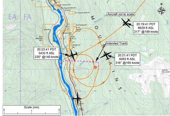 A single left turn to final required a change of direction greater than 90° at a bank angle of up to 40°. T448 then had to descend 900 feet into the ravine to make the drop. After each drop, T448 was to proceed straight ahead over descending terrain in the ravine back toward the Fraser River.