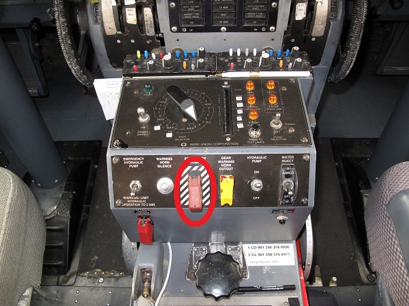 - A project has been initiated to change the emergency drop selector from a guarded toggle switch to a large push–button type switch and relocate it to the middle of the glare shield, in full view and within reach of both pilots.