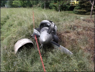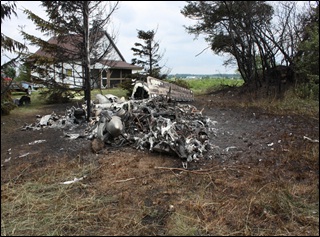 Much of the aircraft was destroyed by the fire rendering a complete examination of the aircraft impossible. Only the engines, propellers and a few external tail components were recognizable.