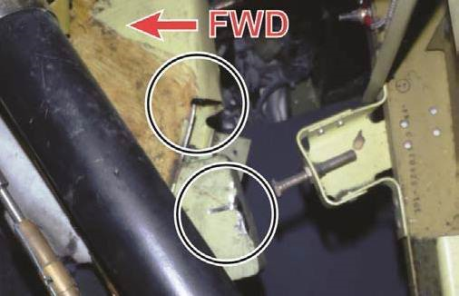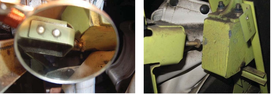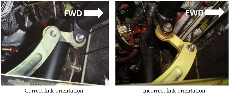 EVAS filed a service difficulty report (SDR) with Transport Canada (TC); the SDR described the incident, included photographs of the components, and identified that the bob-weight had jammed on the stop bolt before the link had flipped over.Footnote 9 The SDR also stated that the stop-bolt contact point was offset to the left side of the bob-weight, and that if the stop bolt was oriented in the centre of the bob-weight, it would have prevented the weight from travelling beyond its normal range.Footnote 10