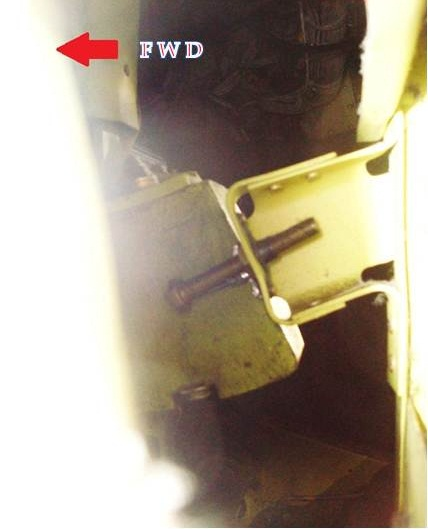 EVAS repositioned the bob-weight by flexing the stop bolt to the left and moving the bob-weight rearward beyond its normal range of travel (Photo 2). Once aligned, the damage was noted to be consistent with the bob-weight scraping the side of the stop bolt.