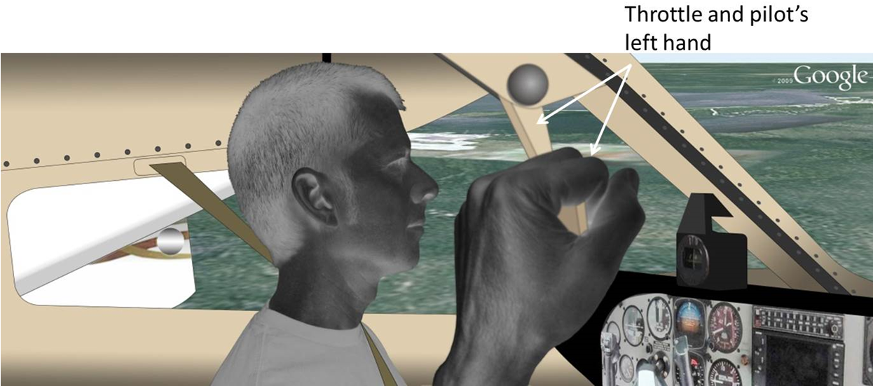 A light associated with the landing gear extension had illuminated in the cockpit, and was shaded on the PIC's command. The momentary flash of the light could have impaired the pilots' night vision to a certain degree. The PIC was flying in the right seat while carrying out a left-hand circuit. Looking across the cockpit past the pilot in the left seat would have made visual acquisition of the runway more difficult (Figure 2).