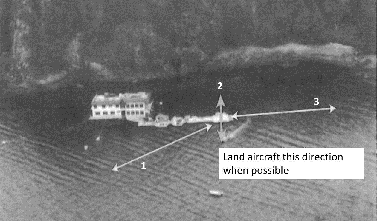 The company was carrying out a non-scheduled commercial service to several remote sites, including the fishing lodge. The company was not required by regulation to register the aerodromes located at the fishing lodges. The requirements for certification do not apply to these facilities. However, the company made approach and site information charts for the benefit of its pilots (Figure 2 ).