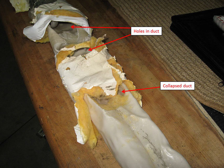 - It was not possible to determine if the hot air duct damage occurred during this event or if it was due to repeated overheating of the system and/or environmental exposure to heat.