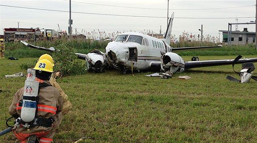 The Beechcraft King Air 100 (registration C-GJSU, serial number B-88) operated by Aviation Flycie Inc. took off from the Montréal/St-Hubert Airport, Quebec, on a local flight under visual flight rules with 1 pilot and 3 passengers on board. As the aircraft approached Runway 24R at the Montréal/St-Hubert Airport, both engines (Pratt & Whitney Canada, PT6A-28) stopped due to fuel exhaustion. The pilot diverted to the St-Mathieu-de-Beloeil Airport, Quebec, and then attempted a forced landing in a field 0.5 nautical mile west of the St-Mathieu-de-Beloeil Airport. The aircraft struck the ground 30 feet short of the selected field, at 1725 Eastern Daylight Time. The aircraft was extensively damaged, and the 4 occupants sustained minor injuries. The emergency locator transmitter activated during the occurrence. The flight took place during daylight hours, and there was no fire.