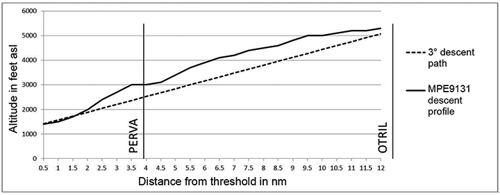 At 1830, MPE9131 was cleared direct to the intermediate fix OTRIL, 12.8 nm from the runway threshold, and to descend to 6000 feet asl. Over the next 5 minutes, MPE9131 was further cleared to 5000, 4000, and 3000 feet asl, and instructed to reduce its speed to 180 knots indicated airspeed.