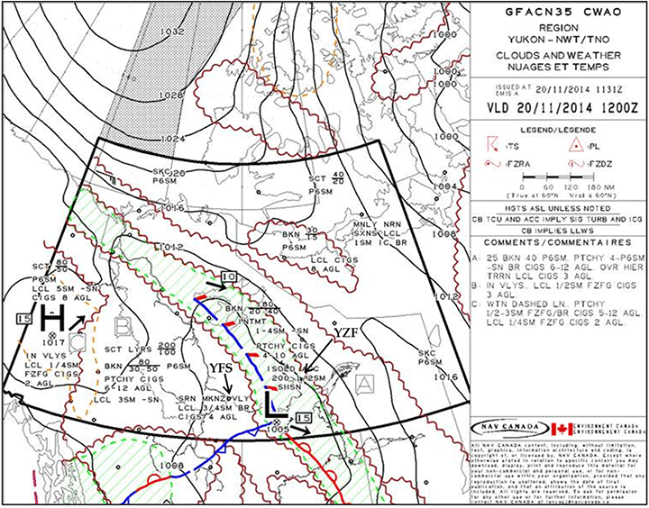 Appendix E – Aviation routine weather reports (METAR) and aerodrome forecasts (TAF) for Yellowknife (CYZF)