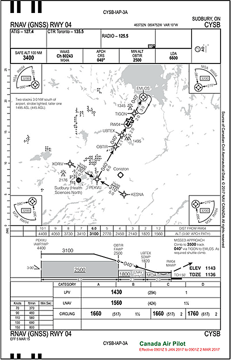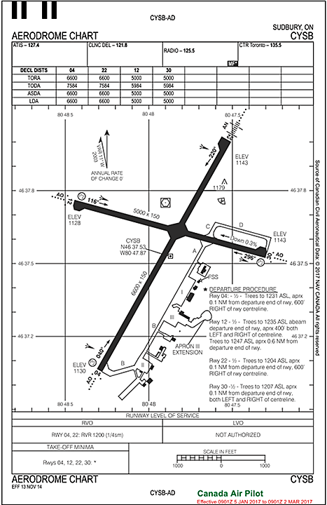 Source: NAV CANADA, Canada Air Pilot, effective 05 January 2017 to 02 March 2017