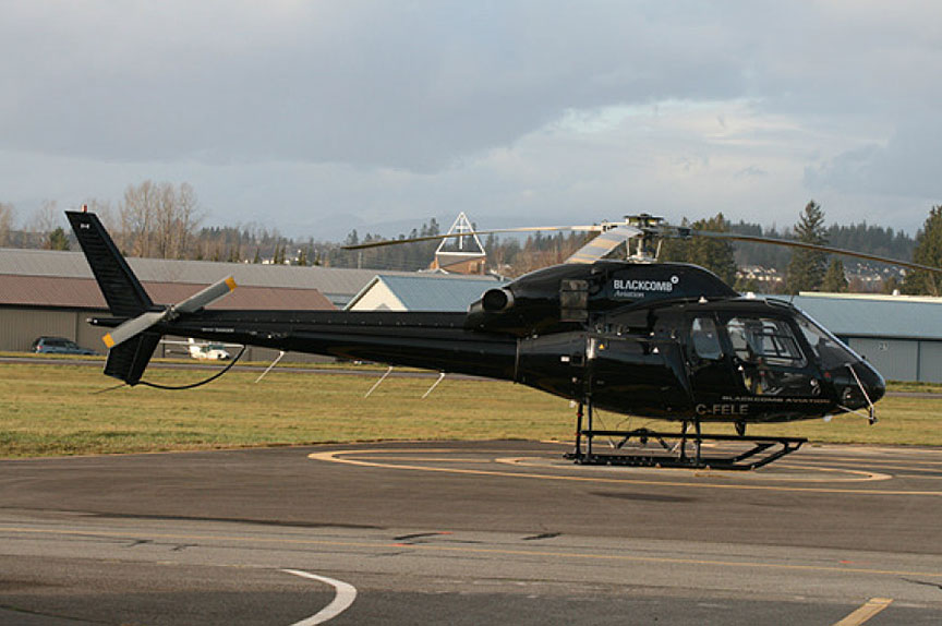 The Aérospatiale AS355N helicopter (registration C-FELE serial number 5688) (Figure 1), operated by Blackcomb Helicopters LP under Canadian Aviation Regulations subpart 703, had landed at Squamish Airport (CYSE), British Columbia, at 1500 Pacific Standard TimeFootnote 1 on 29 December 2016 (the day before the occurrence). It had been operated that day under conditions of ongoing heavy rain and temperatures at sea level at or near 1 °C. After the helicopter arrived at CYSE, it was parked in front of the operator's facility and fitted with insulated covers for the night. The rainfall continued until approximately 2100.