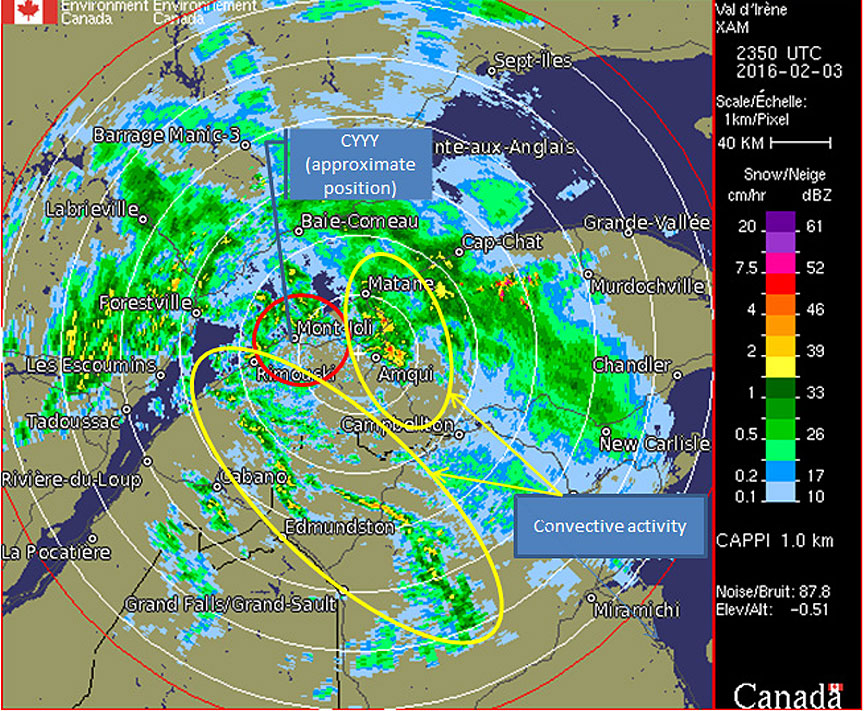 Environment Canada performed an in-depth analysis of the weather conditions affecting the CYYY area at the time of the occurrence. The following sections of the report are based on Environment Canada's analysis.Footnote 10