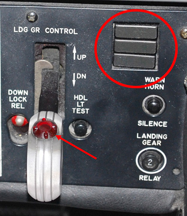 GGN7212 departed CYQL at 0531Footnote 1 and climbed to the flight-planned altitude of 11 000 feet above sea level (ASL). The flight progressed normally into CYYC until 0610, when the flight crew selected the landing gear down. When the landing gear began to extend, a grinding, banging noise was audible. When the landing gear extension sequence stopped, the flight crew observed 1 green down indicator light for each of the main landing gears, but no green indicator light for the nose landing gear. The in-transit light in the landing gear handle was extinguished (Figure 1).