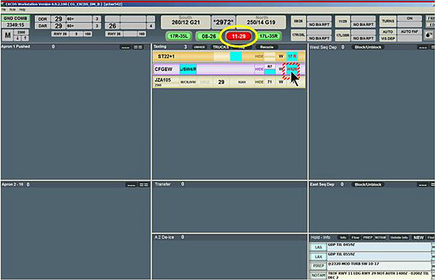 - While in the Runway 29 operations mode, when west ground controllers attempt to remove restrictions to hold short of Runway 11 or Runway 29 from an FDE, a yellow dialog box will appear, asking them to confirm this action.