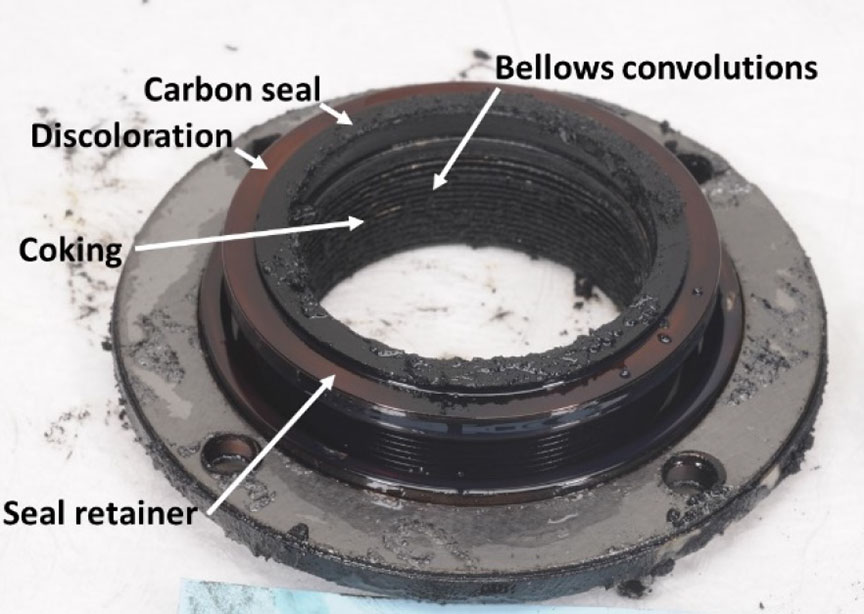 - Carbon deposits that accumulated within the inside diameter of the bellows convolutions interfered with the bellows' ability to expand and to provide a positive seal against the rotor seal.