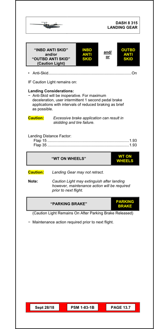 Source: PAL Airlines Ltd., Dash 8 Quick Reference Handbook, DASH 8 315, Revision 31 (December 2018).