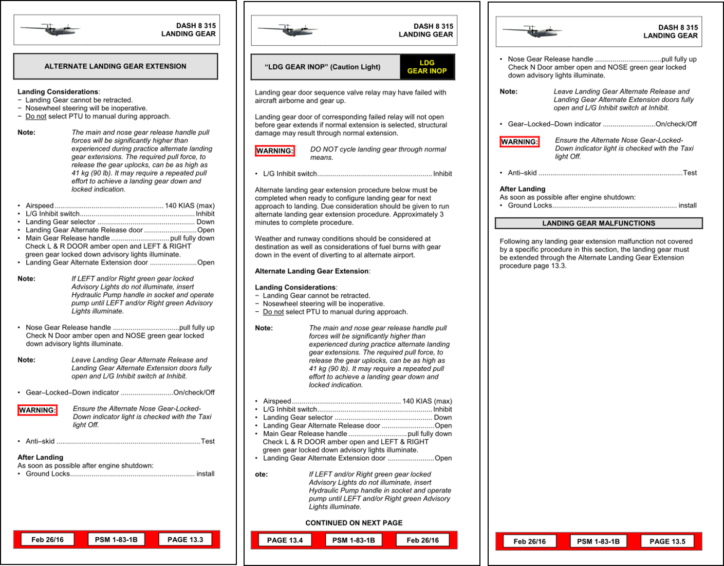 Appendix B – Dash 8 Quick Reference Handbook – ALTERNATE LANDING GEAR EXTENSION and LDG GEAR INOP checklists