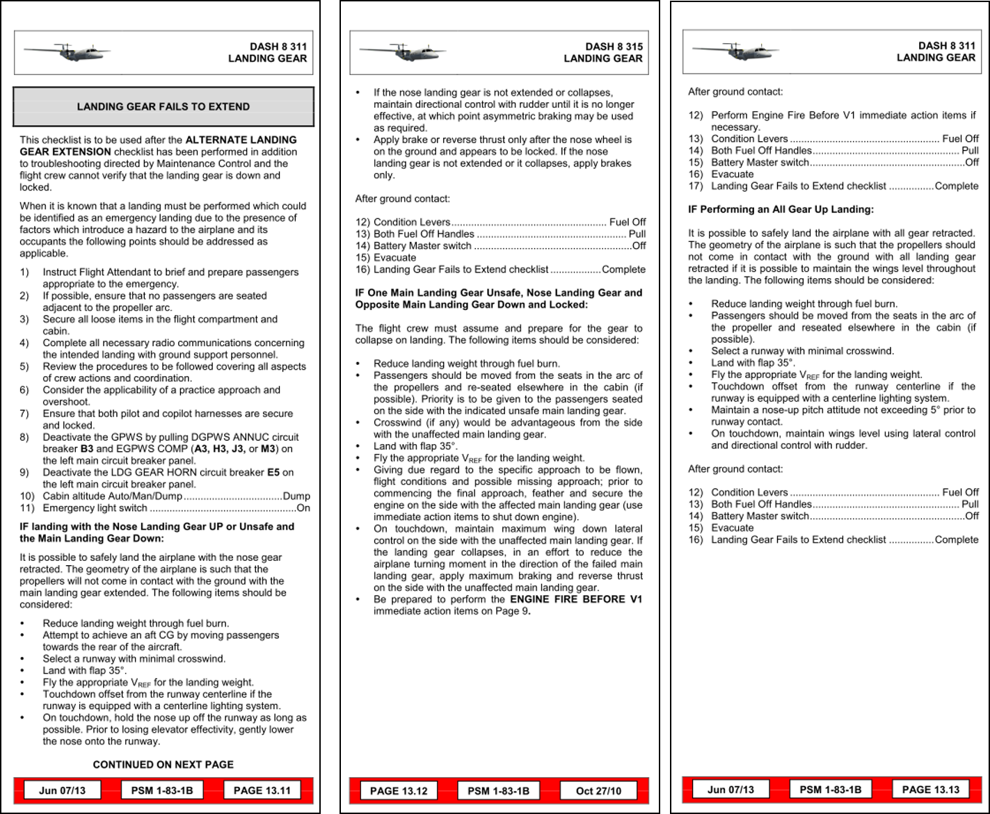 Appendix C – Dash 8 Quick Reference Handbook – Landing gear fails to extend