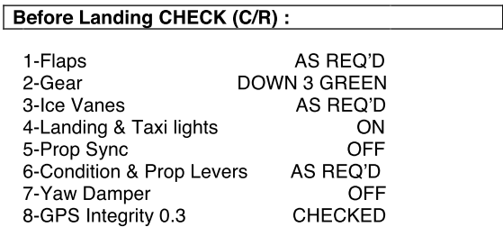 The flight crew set the flaps to 30% for the approach, dropped the landing gear and completed the pre-landing checklist. Speed was stabilized at 120 knots. All the crew had left to do was to set the flaps to the landing position and the propellers to the MAX RPM position, and reduce speed to the landing reference speed (Vref) of 100 knots once landing was assured.
