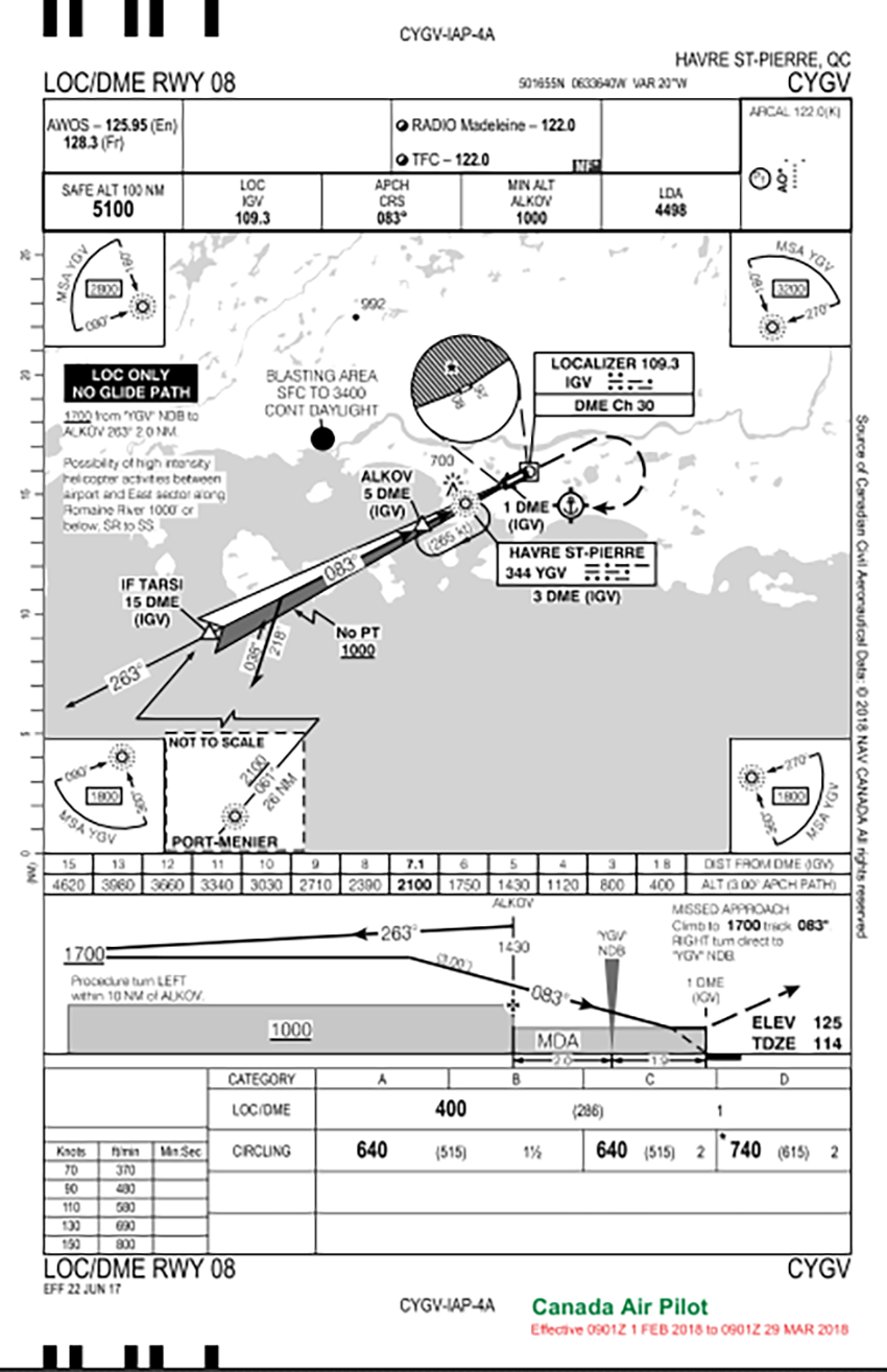 Appendix A – Approach chart for LOC/DME RWY 08 at Havre St-Pierre Airport (not to be used for navigation purposes)