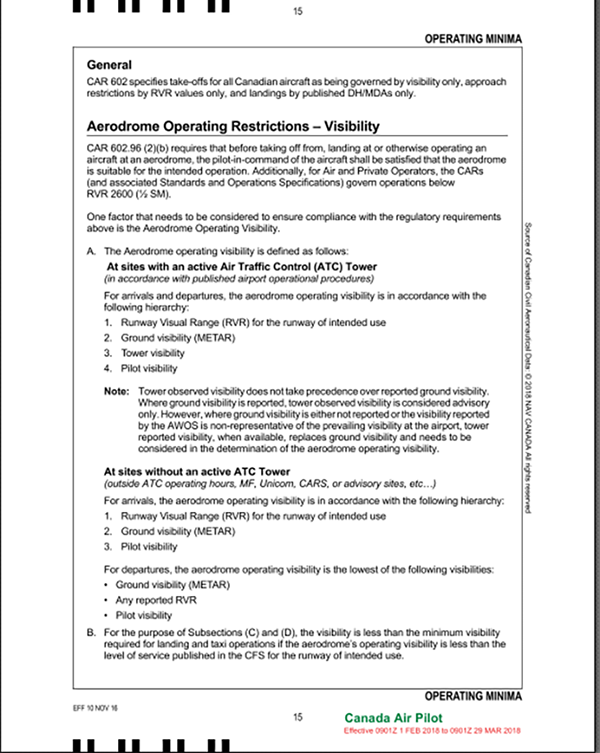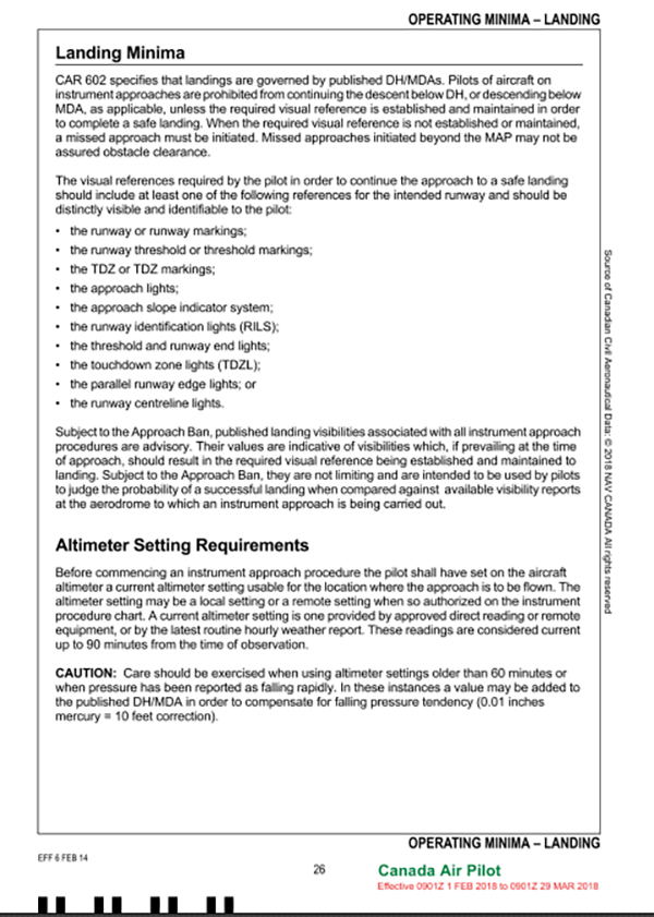 4.2.1 Landing minima in Canada