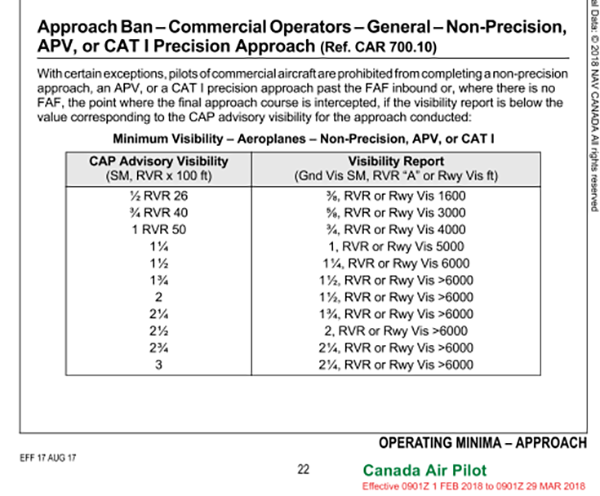 Landing minima in Canada
