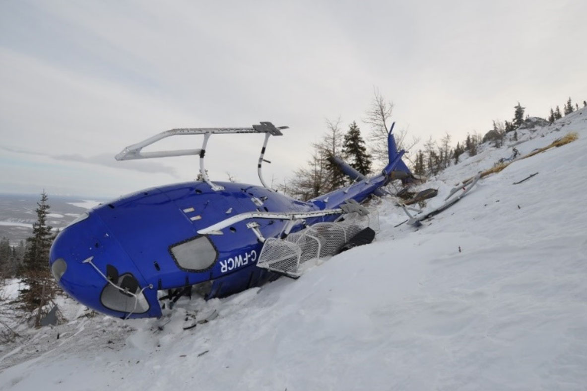 At approximately 1110, the helicopter descended, collided with terrain and came to rest 50 m downslope of the helipad (Figure 2). The emergency locator transmitter did not activate. The engine remained running for a short while, then shut down on its own.