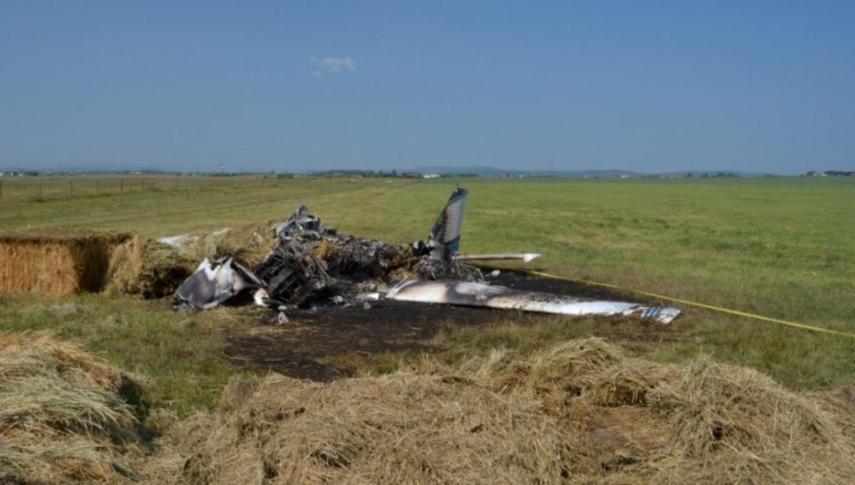 The aircraft failed to climb sufficiently to clear some hay bales that had been stacked in the southeast corner of the field, and struck them. The left-wing fuel tank ruptured on impact, and the resulting post-impact fire destroyed the aircraft (Figure 2).