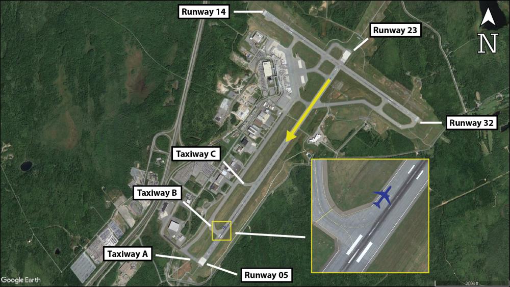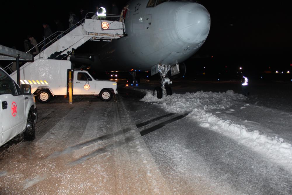 At approximately 1838, an Airbus 320 aircraft landed on Runway 32, but was unable to taxi off the runway because of the ice that covered the runway and taxiway. The aircraft remained stopped on the runway until sand and chemicals were applied. Runway 32 was closed until 2027. Runway 23 was reopened once the aircraft was towed off the runway.