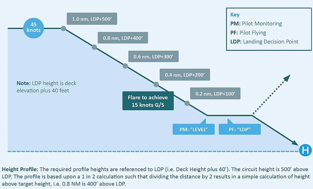 At 1333:04, the PF depressed the cyclic autopilot disengage button to disengage the RADALT hold, then depressed and held the cyclic trim release button to hand-fly the approach. At the same time, the PF lowered the collective (decreased from approximately 45% engine torque to 27% engine torque), using the collective trim release trigger, to commence the descent. The descent commenced when the helicopter was 0.43 NM from the TCF, on a 7.1° approach angle to the helideck. The PM recognized that the approach was steeper than the company’s standard 4.7° approach angle; however, it did not alarm the PM because some company pilots preferred flying a steeper visual approach profile.Footnote 15 The PF asked the PM for the helicopter’s groundspeed, to which the PM replied it was approximately 60 knots.
