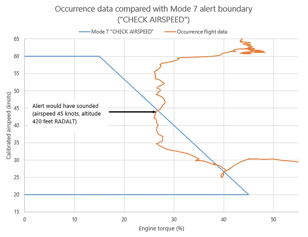 The helicopter inadvertently descended with a very high rate of descent into the fog bank at low airspeed with the landing gear extended. Despite this, the helicopter’s enhanced ground proximity warning system (EGPWS) did not alert the crew to the situation. This is the result of a gap, previously identified by the TSB, in the coverage provided by the S-92’s EGPWS. If an inadvertent descent occurs with the gear down at airspeeds below 50 knots indicated airspeed, the EGPWS will provide no warning against controlled flight into terrain.