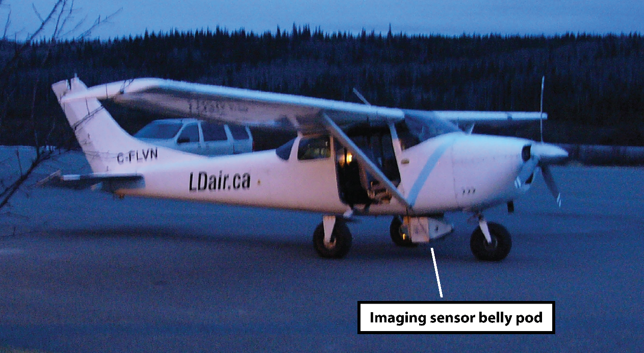 On 01 May 2019, an imaging-sensor-equipped belly pod was installed on the aircraft (Figure 1), as per Supplemental Type Certificate (STC) SA4-662. On 02 and 03 May, flights were conducted to test and calibrate the scanning equipment to detect underground hot spots in areas of previous fire activity. During those flights, it was determined that the best scanning results were obtained when the aircraft flew at a height of between 3000 and 4000 feet above ground level (AGL) and a groundspeed between 80 and 90 knots. It was also determined that the scans were best performed early in the day, before solar heating of ground objects resulted in erroneous infrared signatures.