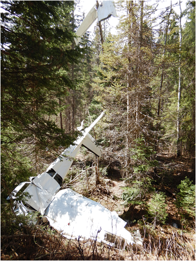 At 0835, a final transmission from the pilot was received giving the position of the aircraft (latitude and longitude) and stating that the aircraft would be landing in the trees (Figure 2, radio transmission 3). Less than 1 minute later, the aircraft crashed into a forested area adjacent to the Babine River. The 406 MHz emergency locator transmitter (ELT) activated on impact and transmitted a signal, which was received by the Canadian Mission Control Centre (CMCC). The CMCC then relayed the information to the Joint Rescue Coordination Centre (JRCC) Victoria.
