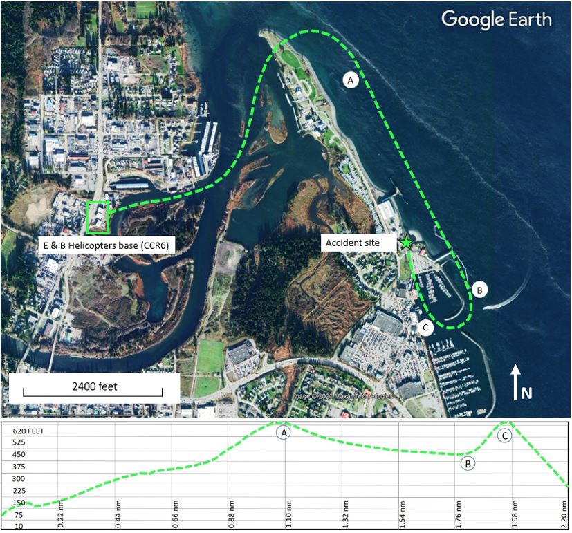 On 24 September 2019, the E & B Helicopters Ltd. Bell 206B helicopter (registration C-GEBY, serial number 3375) was conducting a visual flight rules flight from the operator's base at Campbell River (E & B Heli) Heliport (CCR6) in Campbell River, British Columbia, to Moat Lake, British Columbia, with only the pilot on board.