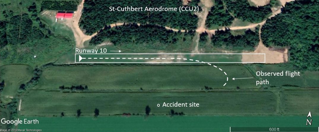 On 24 May 2019, the DTA Voyageur II 912S basic ultralight aircraft (registration C-IULM, serial number 284), operated by ULM Québec Inc. (ULM Québec), departed St-Cuthbert (ULM Québec) Aerodrome (CCU2), Quebec, at approximately 1900,Footnote 1 with a student in the front seat and a pilot providing instruction sitting in the rear seat. For approximately 1 hour, the aircraft flew locally, completing several circuits at CCU2 and low-altitude flyovers of Runway 10.