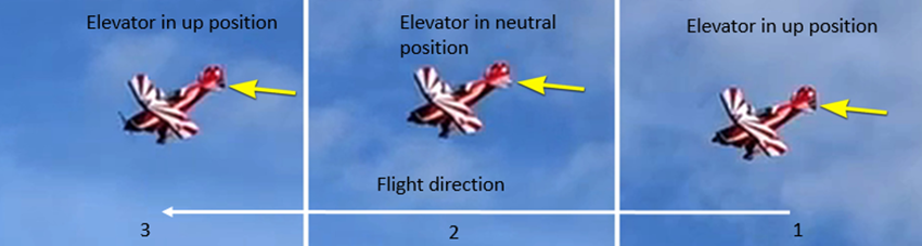 Once the rudder was fully deflected to the left, the bank angle increased from 22° to 88° to the left. The aircraft was at 351 feet AGL at that moment, flying at a speed of 65 knots, which was less than the stall speed for a 60° turn. The aircraft stalled and rapidly lost altitude. The left bank gradually decreased to 29° when the aircraft was at 122 feet AGL. At that point, the aircraft was flying at a speed of 72 knots, in a nose-down attitude at an angle of 24°. The video enabled investigators to note that, during the descent, the elevator was placed in the up position twice (Figure 3), indicating a recovery attempt before the impact.
