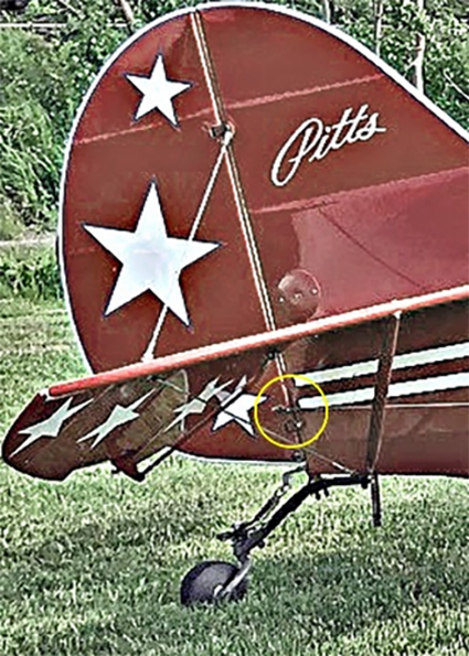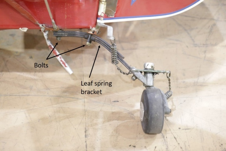 The tail wheel is attached to a leaf spring that is bolted to the fuselage with 2 bolts (Figure 5). The examination found that the rear bolt of the leaf spring was broken. This break allowed the leaf spring to pivot around the front bolt. It could not be determined whether the break occurred before or after impact. However, an examination of the tail wheel assembly revealed that its full movement in one direction or the other could not interfere with the movement of the rudder.