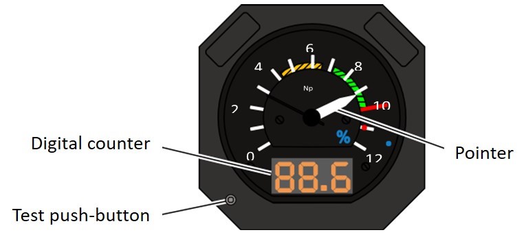 The engine and propeller indications in ATR 42 series aircraft are displayed in both analogue and digital formats. The dials indicate: