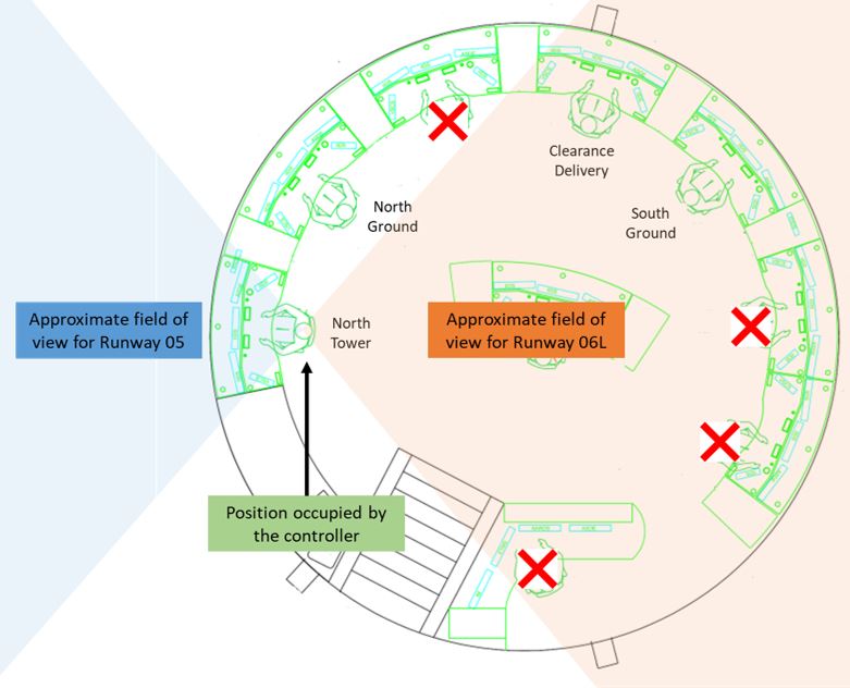 Furthermore, when the controller perceived that the Embraer 190 was about to become airborne, and with no expectation that it would perform a rejected take-off at that point, he concluded that it no longer required his attention and monitoring. He then shifted his body and visual scan, and started focusing on listening to the Boeing 777’s clearance readback, monitoring an aircraft landing on Runway 05, instructing an aircraft to line up on Runway 06L, and then looking down at his CWP. Because the controller had already shifted his focus to aircraft arriving on Runway 05, his back was likely turned away and he was no longer looking at the departure end of Runway 06L and, therefore, the Embraer 190 was no longer in his field of view.