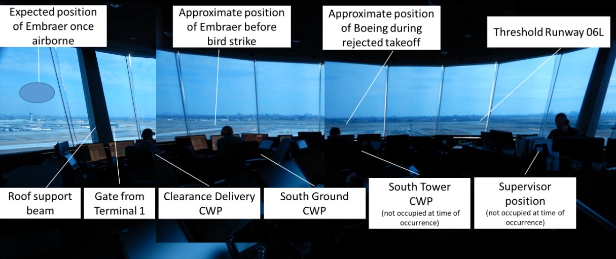 At 0948:48.7, the controller issued a take-off clearance to the Boeing 777, unaware of the bird strike and the Embraer 190’s rejected takeoff.