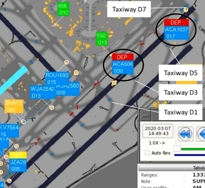 During this occurrence, the A-SMGCS track labels for the Embraer 190 and the Boeing 777’s radar targets automatically changed to indicate that the aircraft were in air before once again showing them as being on the ground (Table 1).
