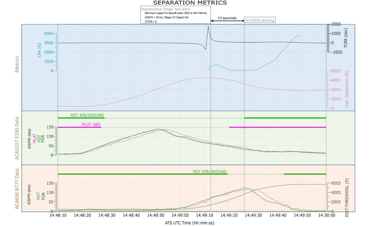 | 0949:43 | Stage 2* | Boeing 777 Midway point along Runway 06L | Embraer 190 Departure end of Runway 06L |