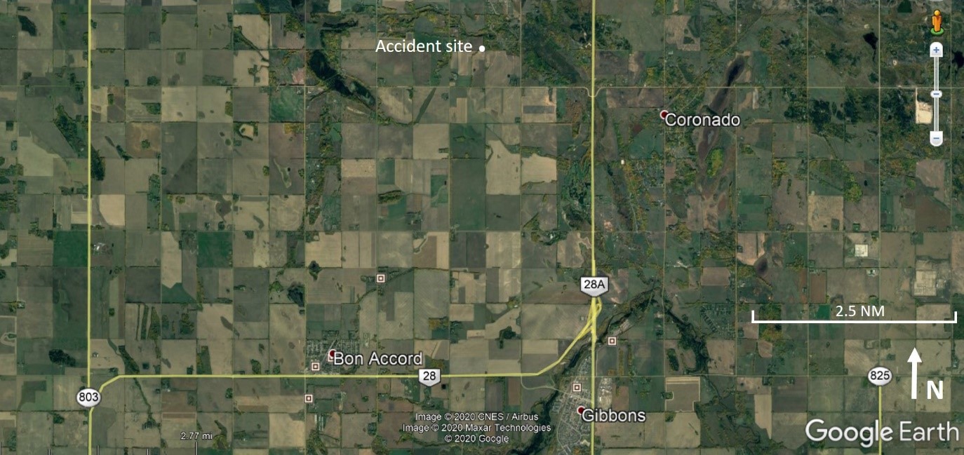 On 13 May 2020, the RS Ultra Kangook MF powered paraglider (registration C-ILQJ, serial number 463) was conducting a local recreational flight from a private field 4.5 nautical miles (NM) northwest of Gibbons, Alberta (Figure 1).