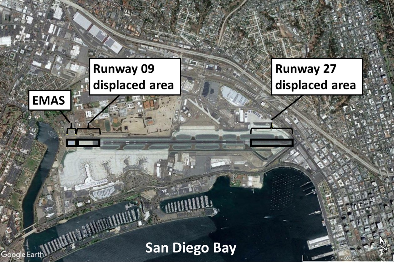 - The aircraft was operating at night and in fog, in an area where visibility was between ¼ statute mile and ½ statute mile. As a result, there were few visible cues available to the flight crew to identify and verify the aircraft’s position on Runway 27 at San Diego International Airport.