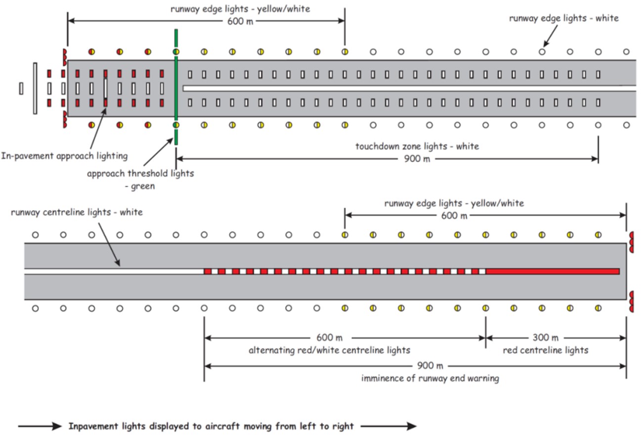 - Use the white arrows on the runway centerline between the beginning of the runway and the displaced threshold to further confirm runway centerline alignment. Footnote 87