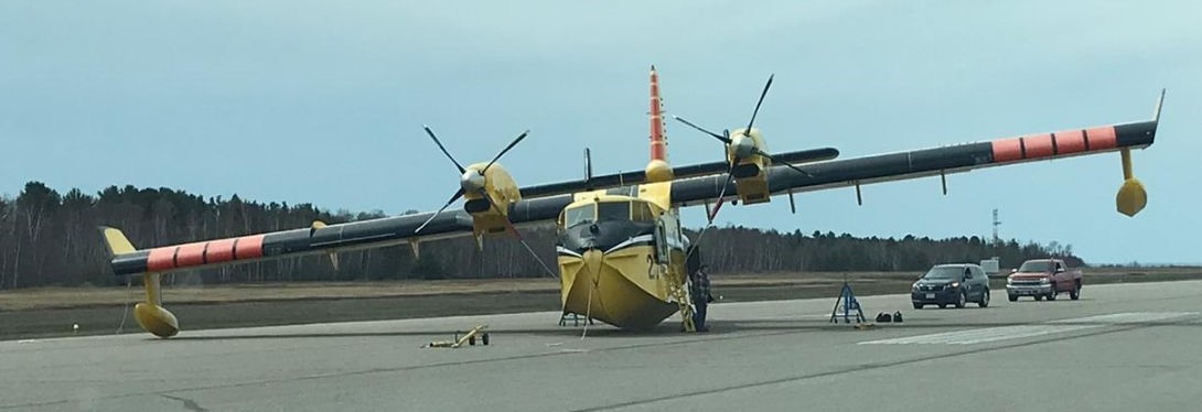 Previous CL-415 unintentional gear-up landing on runway
